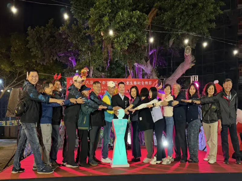 三民區「中都榕樹爺爺重生慶耶誕」第二屆藝術音樂節於19日晚間在榕樹公園熱鬧登場,透過音樂與表演,將老榕重生的故事進行跨世代傳承。副議長曾俊傑表示,老榕重生的故事代代相傳,提醒大家一起守護榕樹爺爺,也守護大中都。