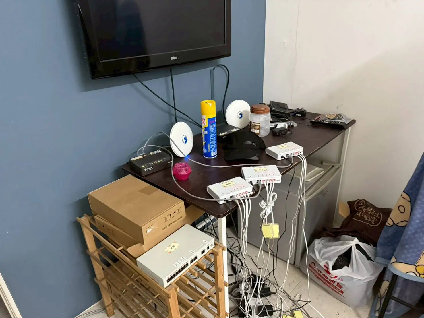 專案小組針對全台 39處機房據點展開搜索,查扣的證物有IPPBX話務轉接設備83台、電話線轉接盒62個、WIFI發射器19個、數據機19個、無線網路接取器2個、側錄封包資料15筆、中華電信帳單10張、房屋租賃契約1張、筆記本1本、現金新臺幣93,200元、手機15台及汽車2部等證物。