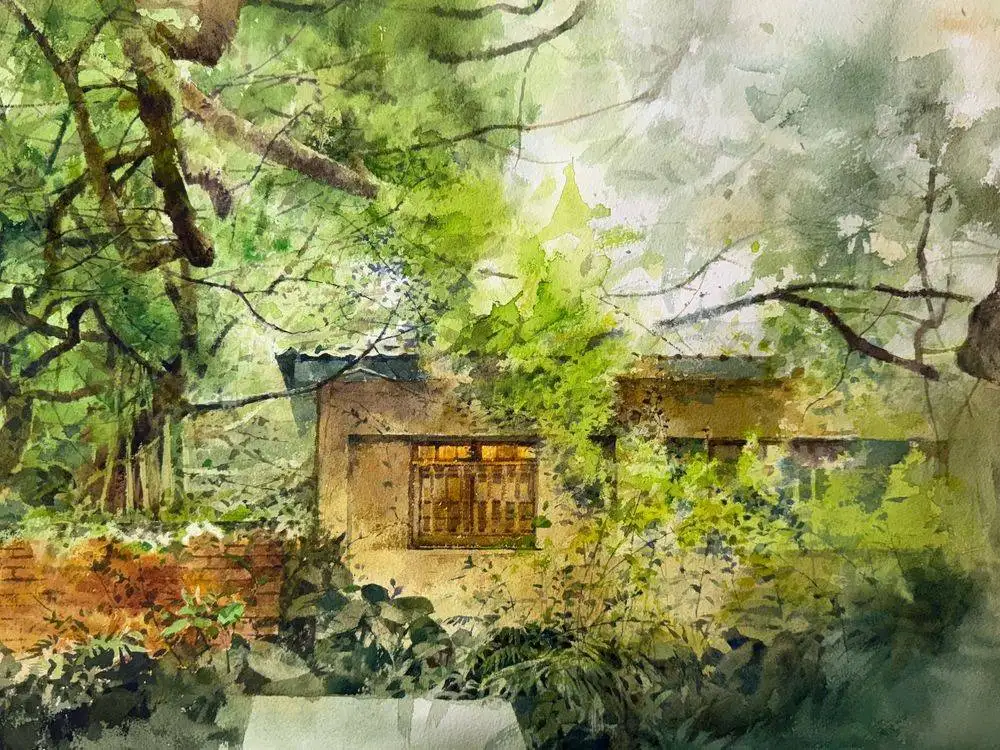 張宏彬長期以自然為創作核心,關注人與環境之間的關係。他透過層層堆疊的筆觸描繪山林景象,使畫面呈現出穩定而沉靜的節奏。在《山居歲月》中,濃密綠意交織出彷彿遠離喧囂的空間,展現一種內在安定感;而《綠蔭絮語》則以細緻光影變化,捕捉林間流動的氣息,使自然不只是景觀,也成為一種可以被感受的存在。